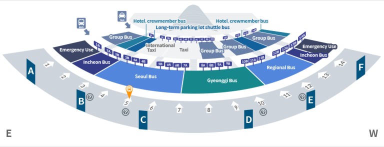 1. At the airport Terminal 1, go to the bus area on the first floor, No. 5(near Gate B or C)